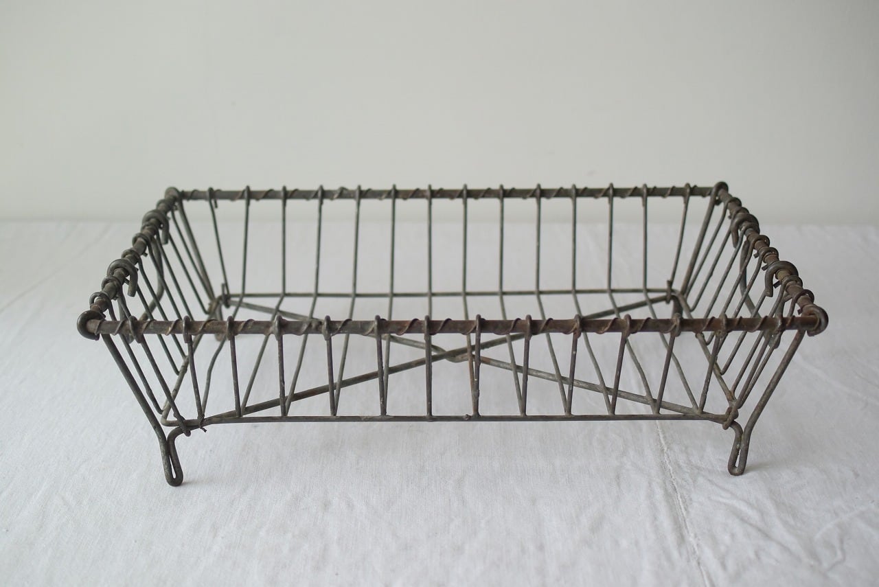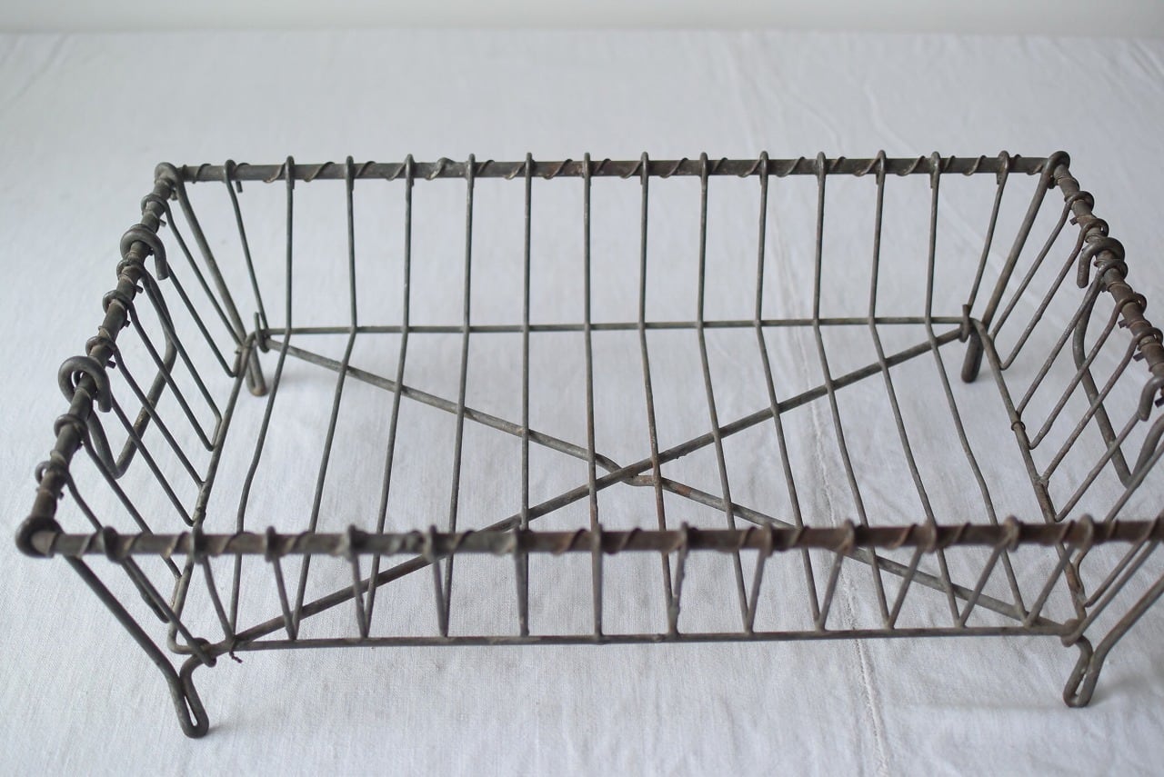やや力強い印象のワイヤーで作られたアンティークの水切りかご。