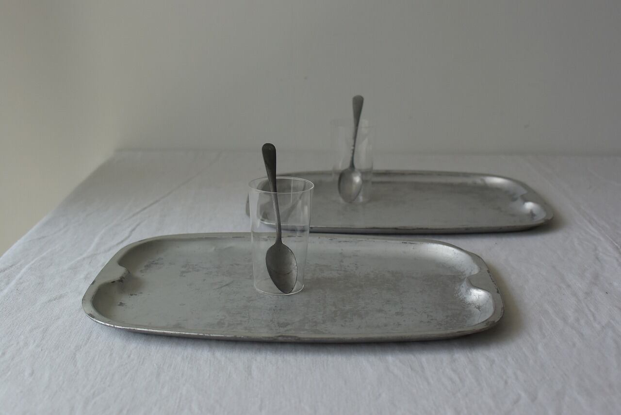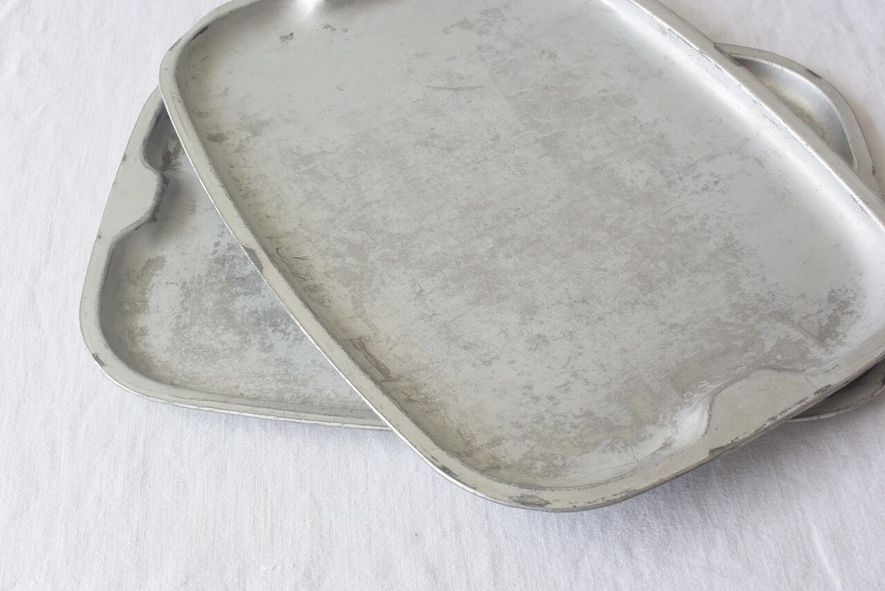 持ち手のあるデザインのアルミトレイはあまり見かけません。