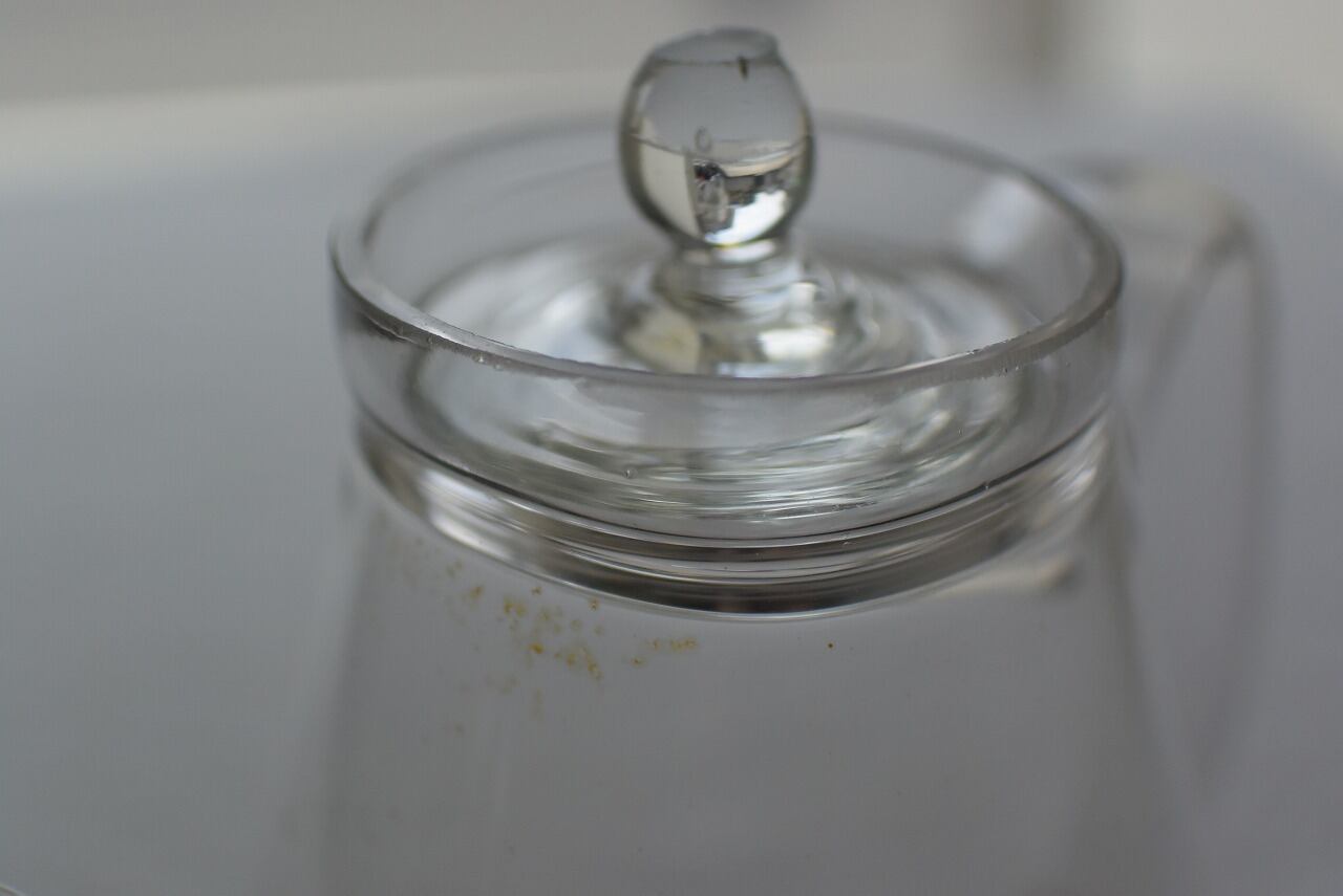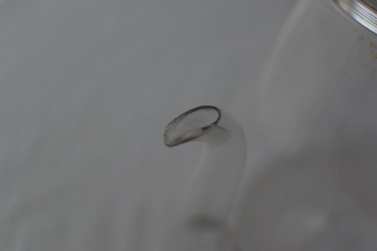 胴部にへこみがあります。これも古いガラス、吹きガラスの良さとして感じてくださる方に。