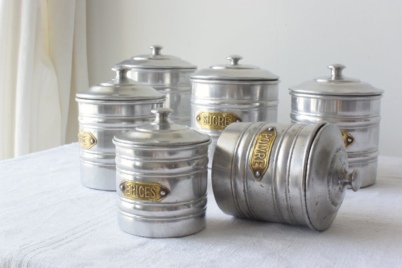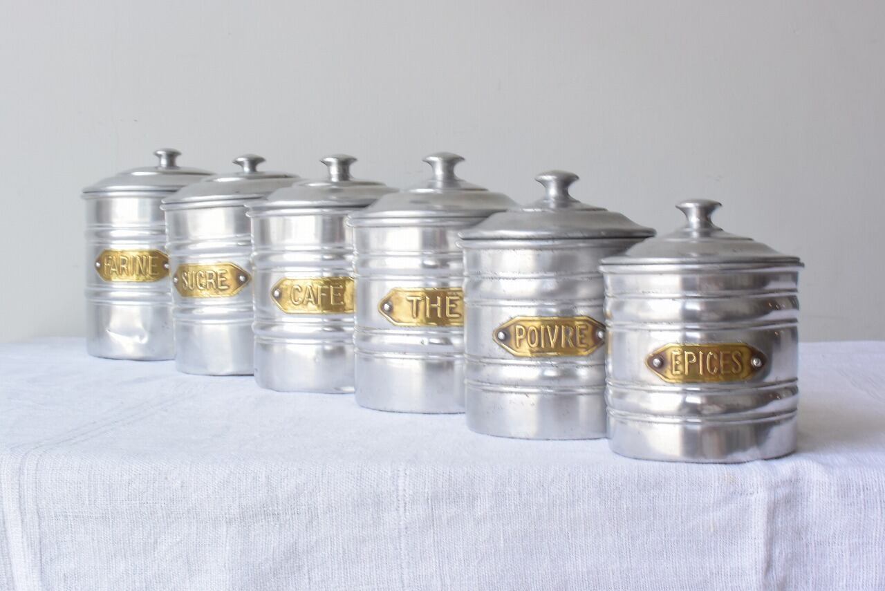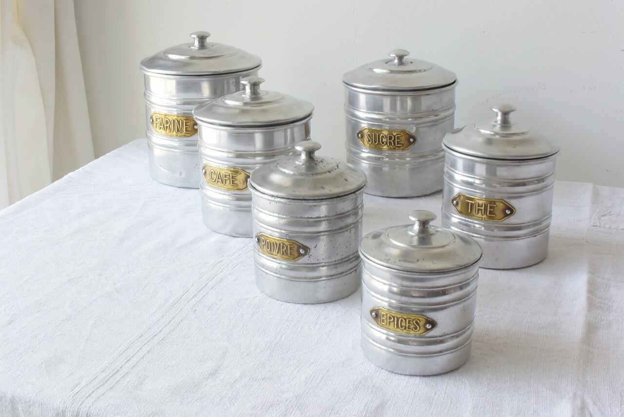 アンティークアルミキャニスター6個セット