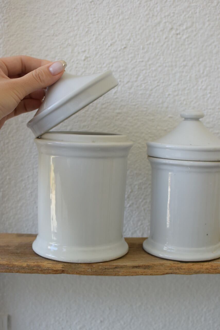 中は綺麗です。 キッチンでお茶やコーヒー、お砂糖やお塩、 サニタリーで綿棒やコットン、お薬の保管などにも。 直径10㎝高さ17㎝