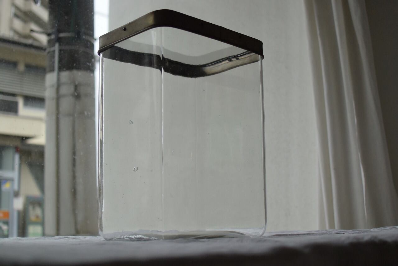 ガラス蓋の四角瓶