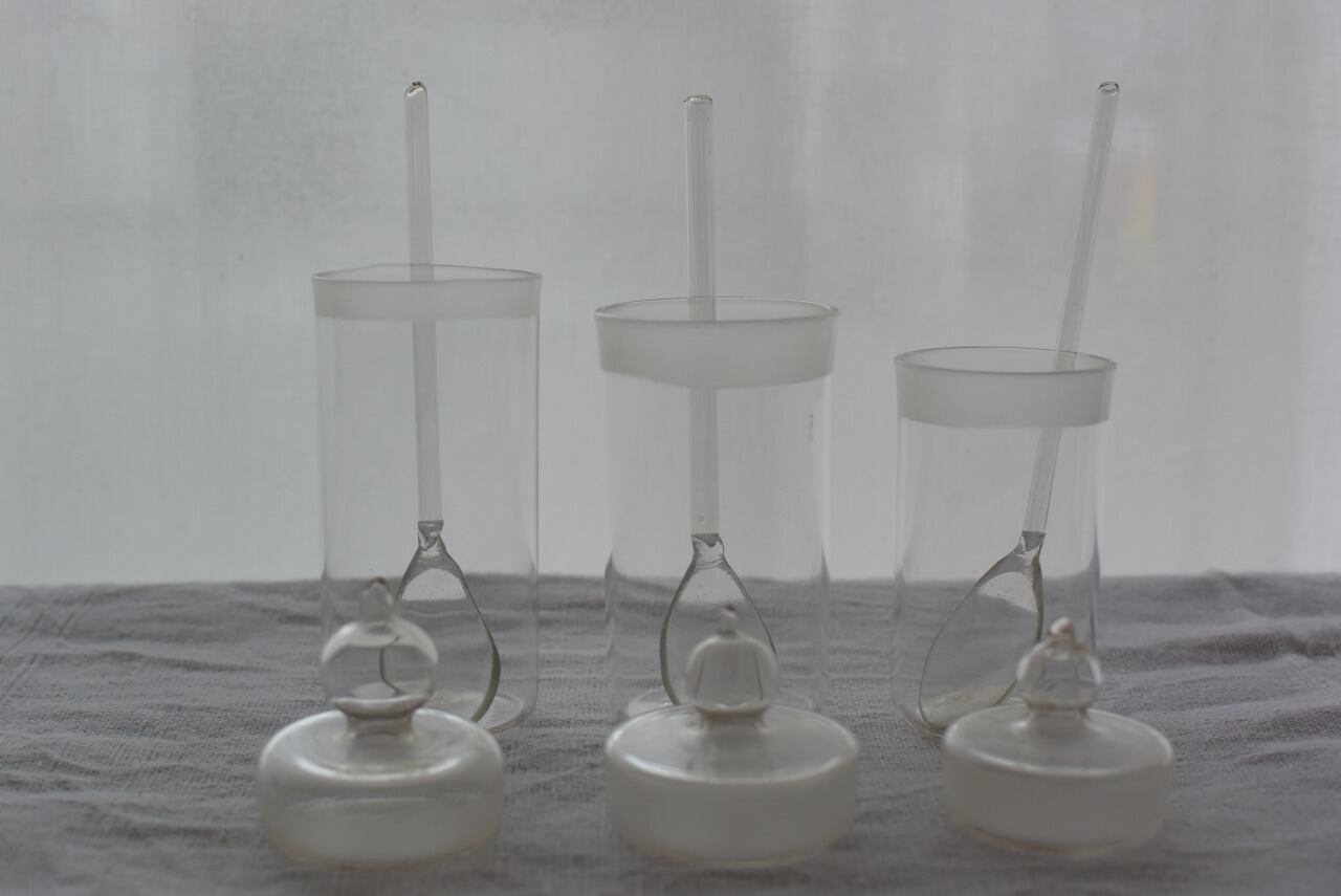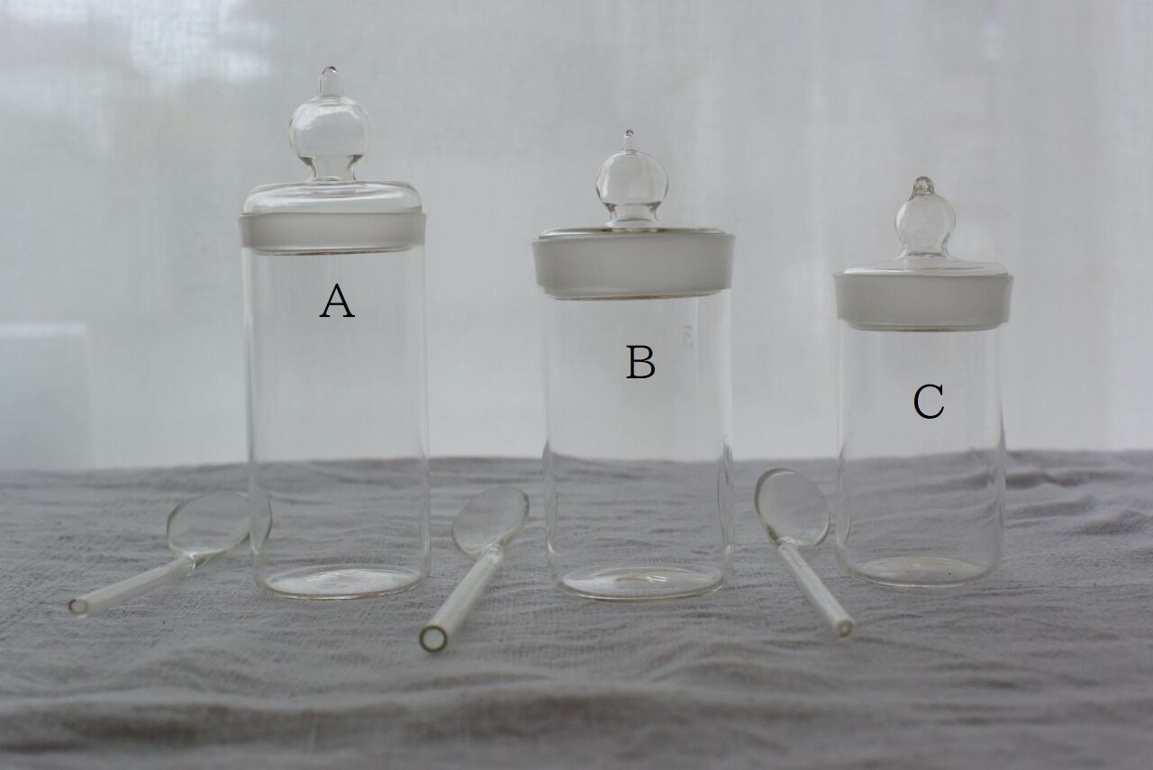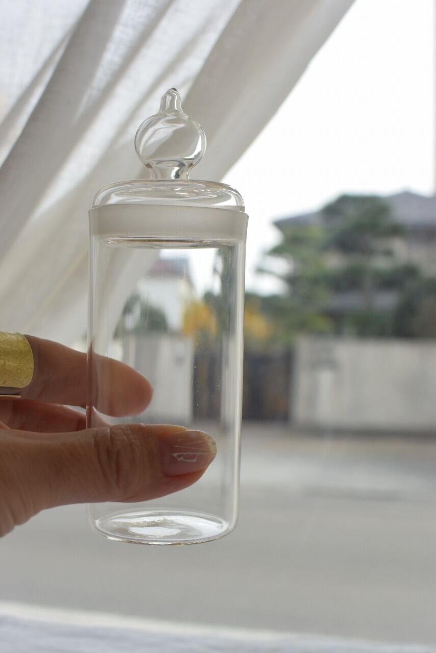 つまみの可愛らしいガラス容器とガラスのスプーン