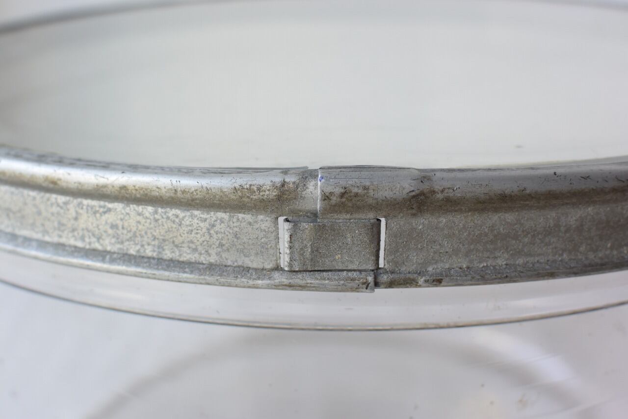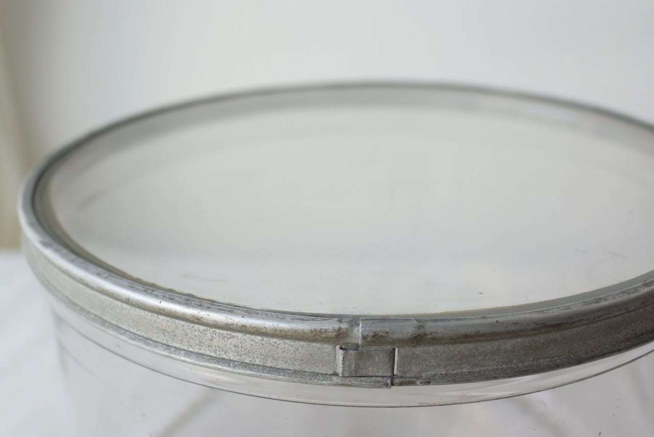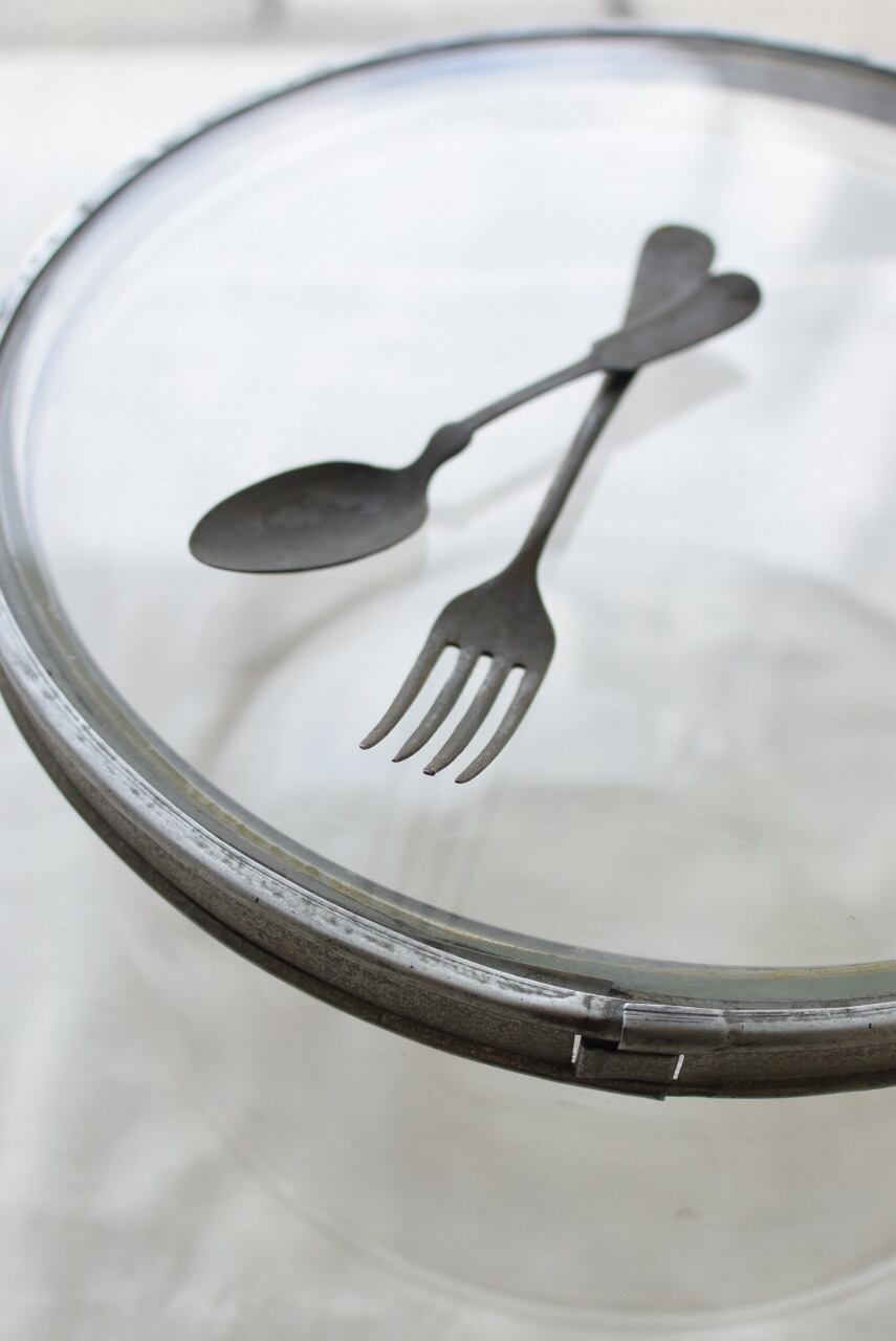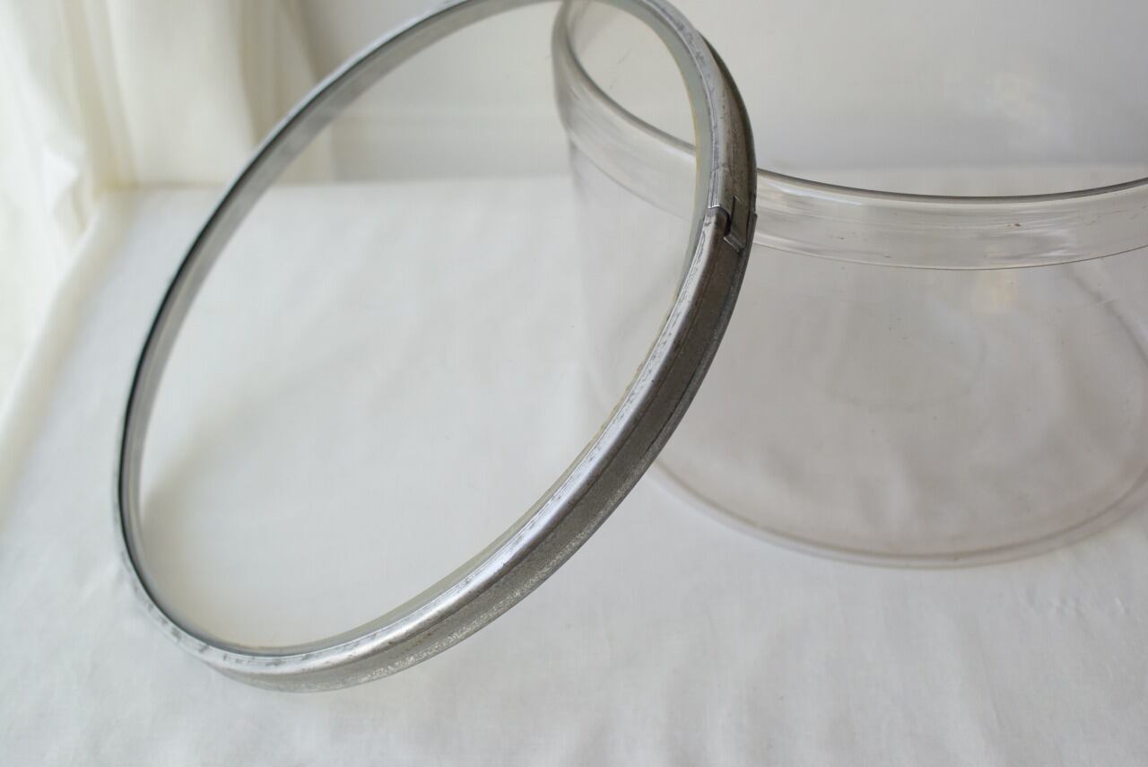 アルミフレームの硝子蓋が珍しいガラス容器です。