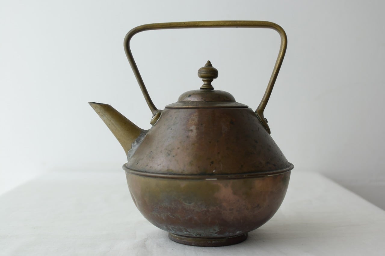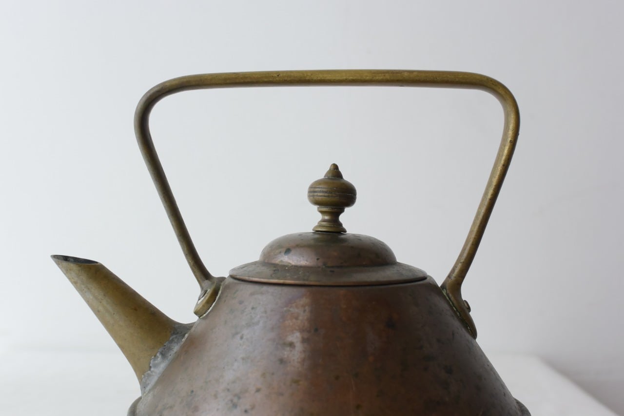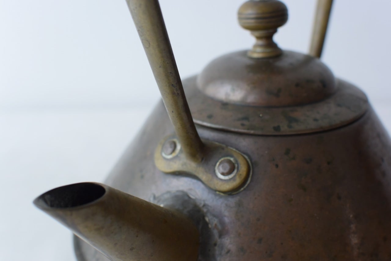和にも洋にも馴染む素敵なデザインです。 水漏れチェック済み。 銅のような真鍮のような、、、 とても素敵なケトルです。