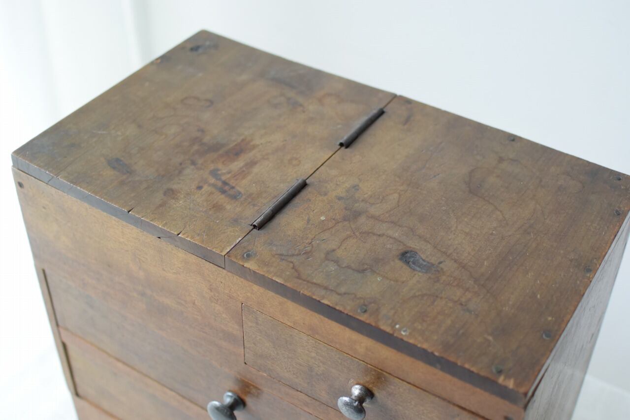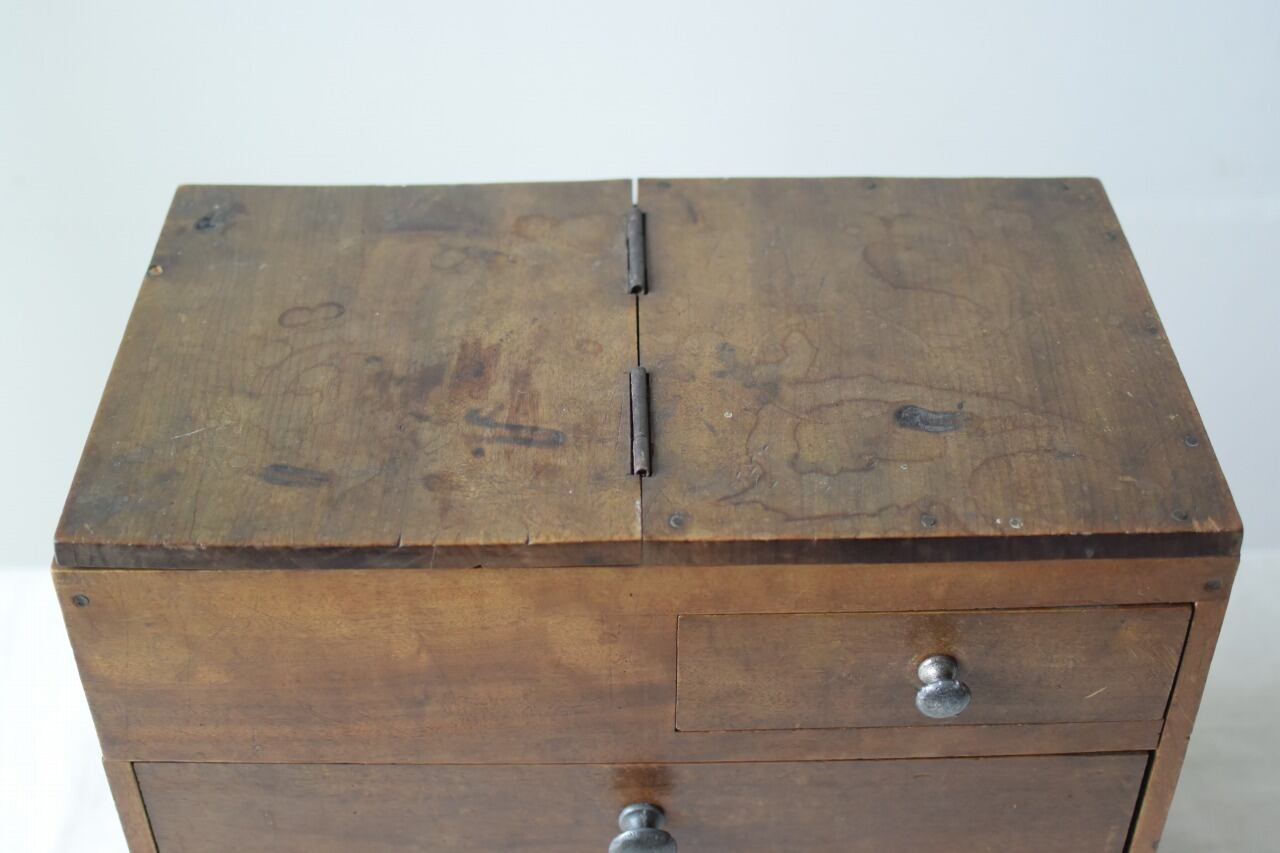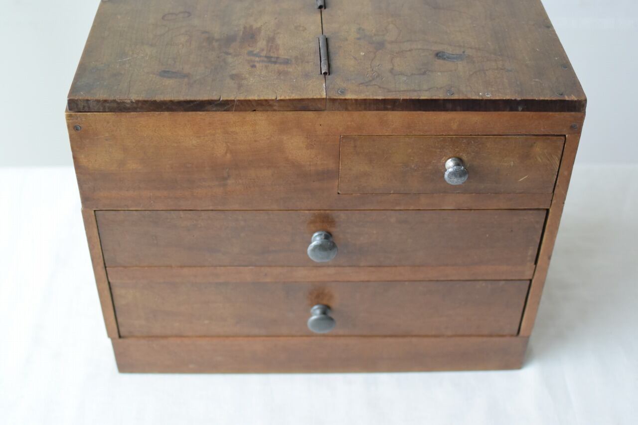 木の種類は不明ですが上質な木で作られた昔の裁縫箱。