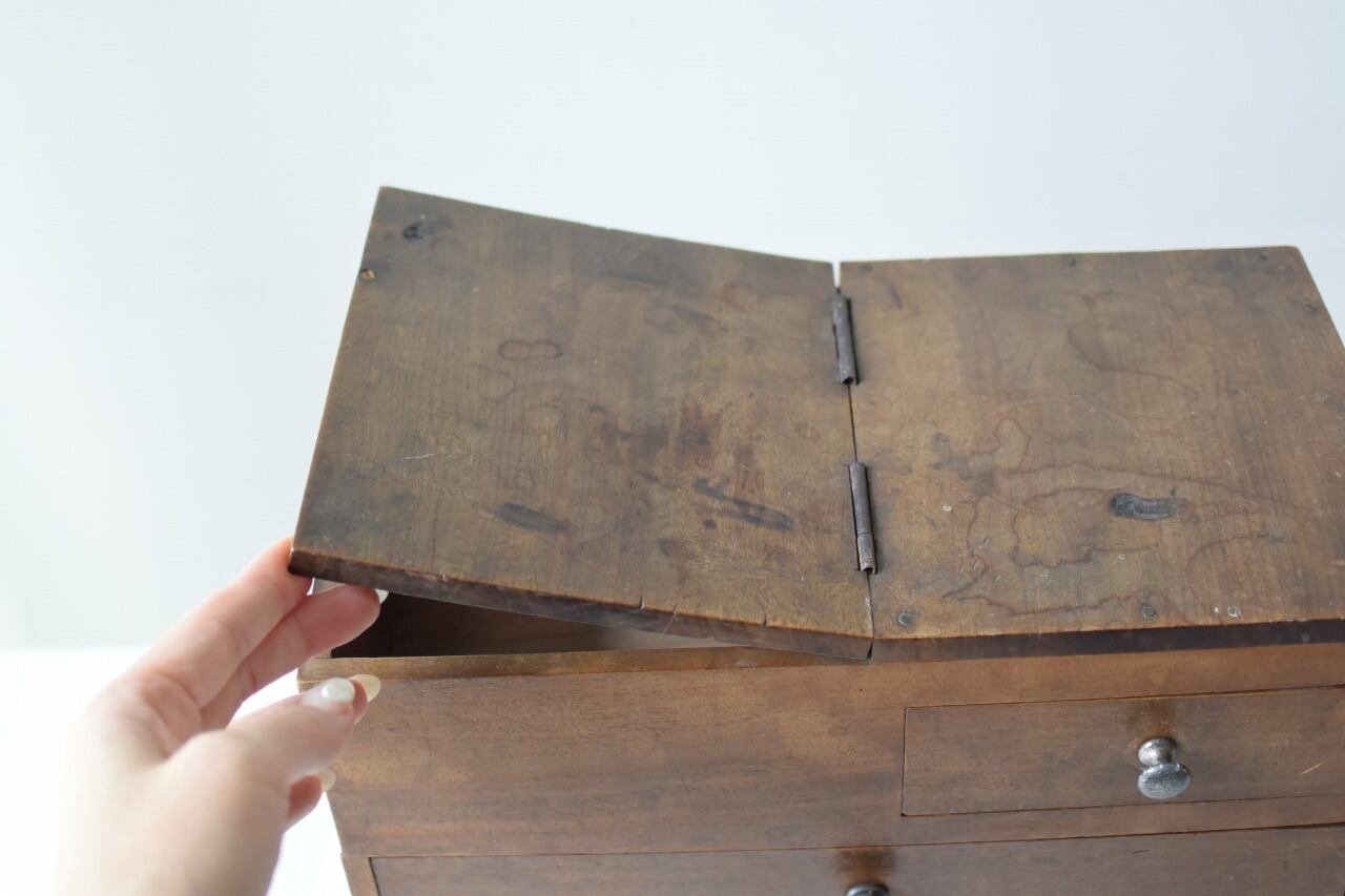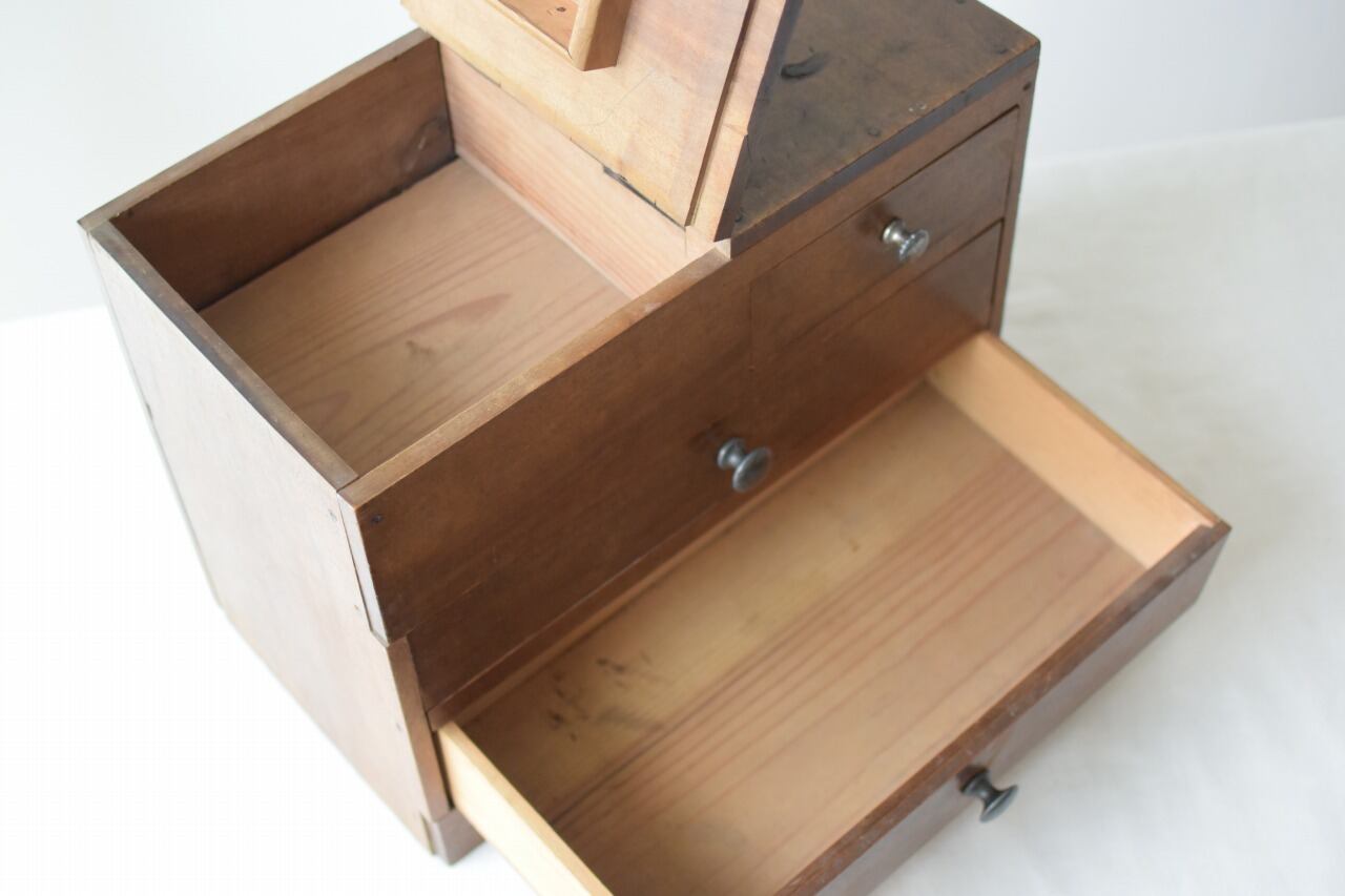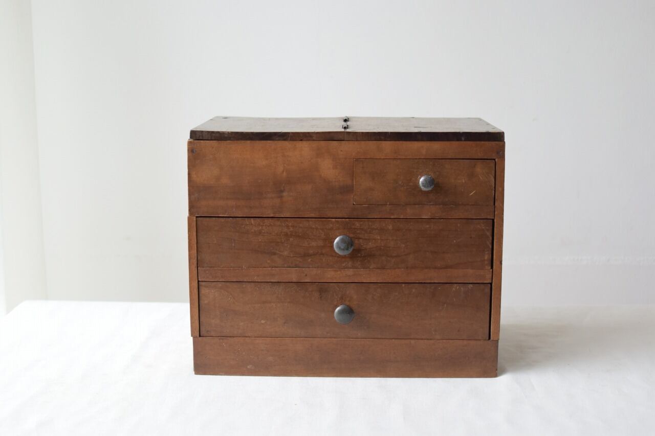 木の種類は不明ですが上質な木で作られた昔の裁縫箱。