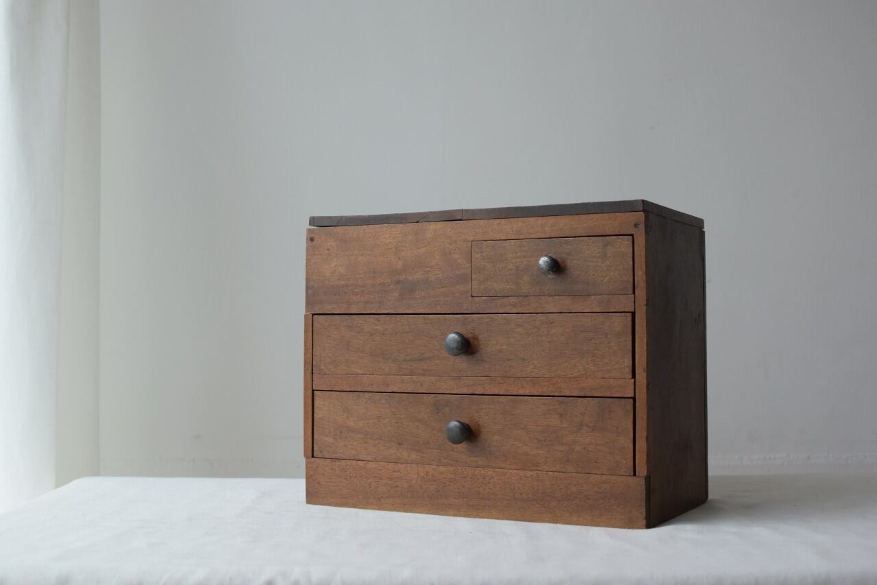 上部のぱかっと開く部分がアクセサリーやメガネなど毎日使う小物の収納に重宝しそうです。